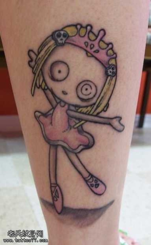 腿部卡通木偶纹身图案