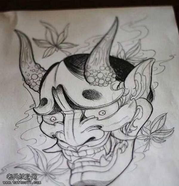 能面万媚纹身手稿_52张日式能剧面具纹身手稿图案素材欣赏
