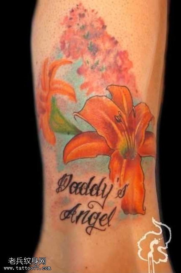 腿部百合花纹身图案