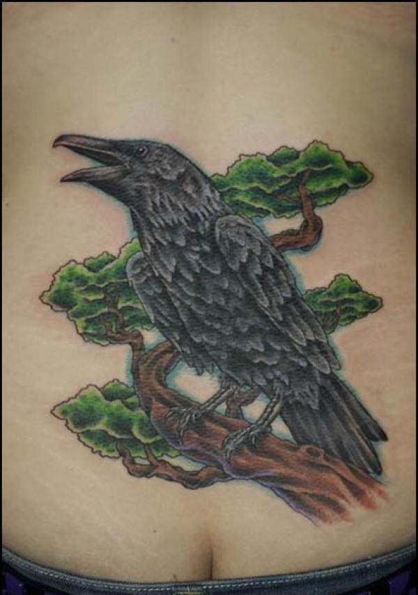 松树乌鸦纹身图案