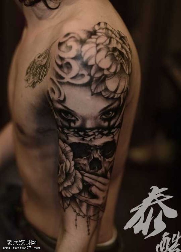 个性手臂悲伤的骷髅纹身图案图案图片_骷髅纹身图案大全_纹身图吧
