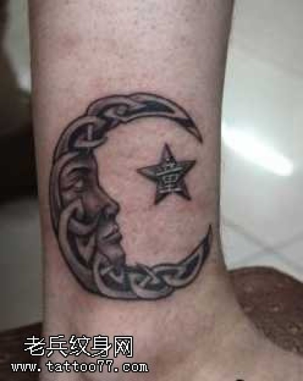 腿部月亮星星纹身图案