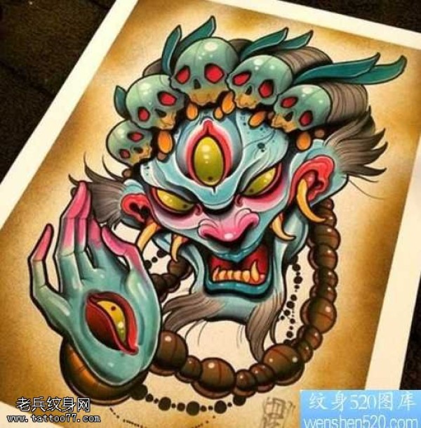 能面万媚纹身手稿_52张日式能剧面具纹身手稿图案素材欣赏