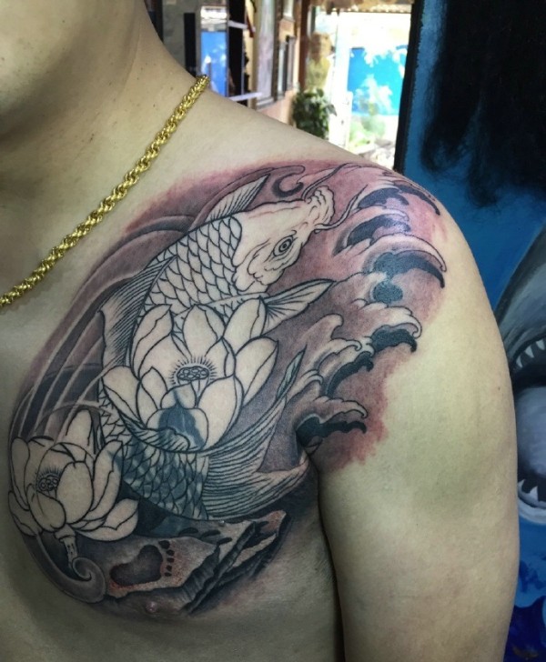 男士胸前黑白鲤鱼纹身刺青朝气勃勃