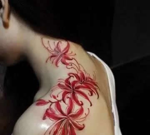 后肩唯美花藤英文图案图片_植物纹身图案大全_纹身图吧