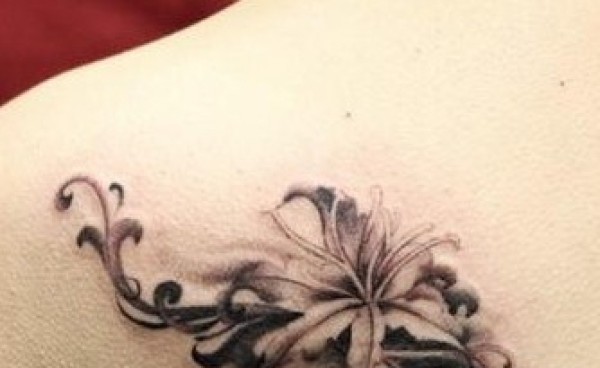 后肩唯美花藤英文图案图片_植物纹身图案大全_纹身图吧