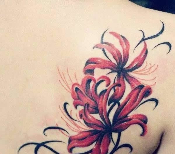 后肩唯美花藤英文图案图片_植物纹身图案大全_纹身图吧