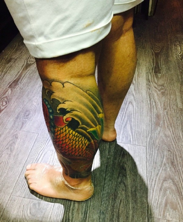 传统鲤鱼花小腿纹身_腿部纹身图案大全_纹身图吧