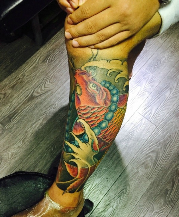 腿部鳌鱼纹身图案_腿部纹身图案大全_纹身图吧