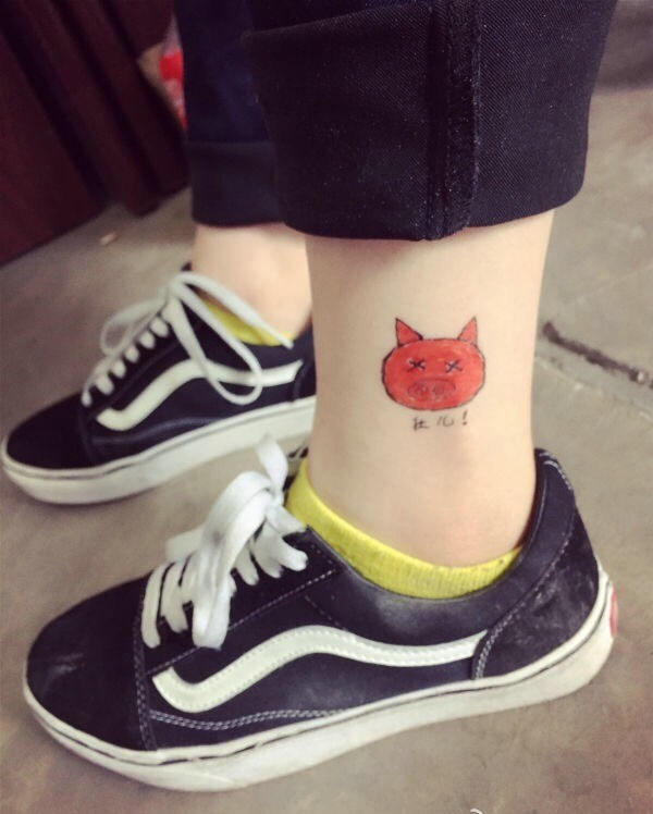 裸脚萌萌哒小猪纹身刺青十分可爱