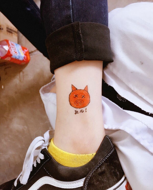 裸脚萌萌哒小猪纹身刺青十分可爱