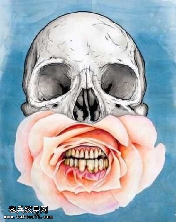 手稿骷髅玫瑰纹身图案