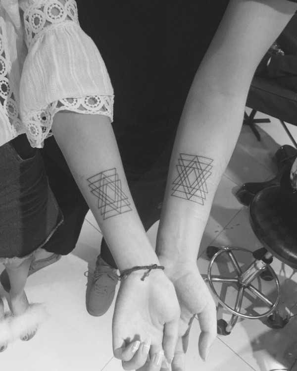 个性情侣手腕N个几何三角形纹身刺青