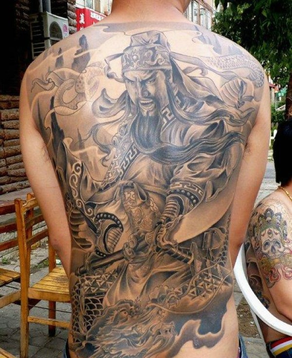 满背经典帅气迷人的关公纹身图案