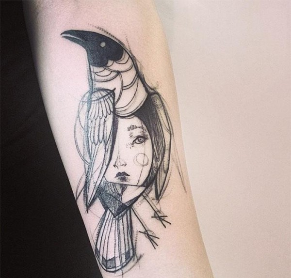 一套漂亮的素描纹身,看起来就像是铅笔画的纹身