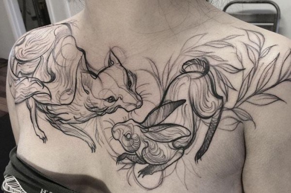 一套漂亮的素描纹身,看起来就像是铅笔画的纹身