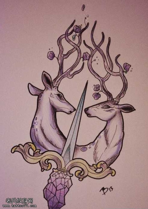 手稿羚羊匕首纹身图案