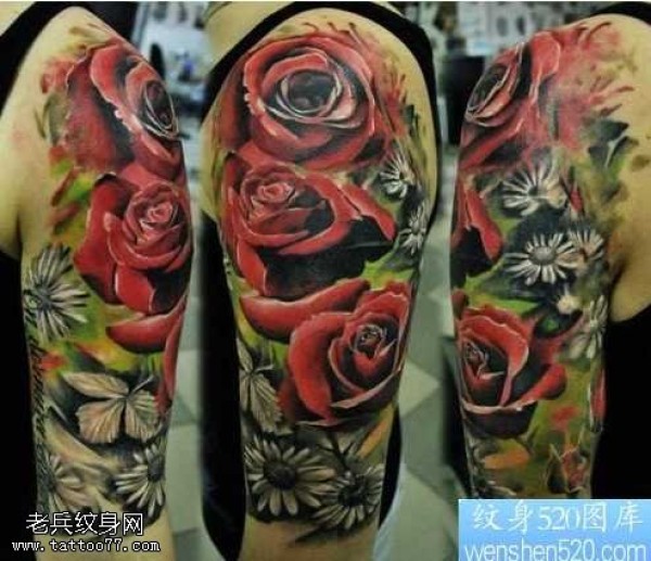 欧美玫瑰纹身 男生手臂上花朵纹身图片
