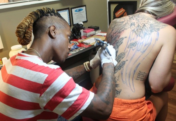 性感女生满背创意文身作品