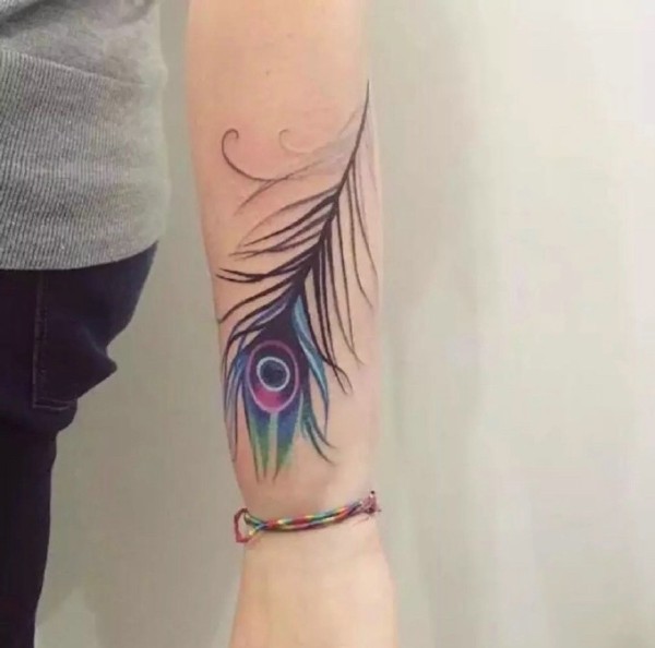 手臂惊艳夺人的羽毛纹身图片