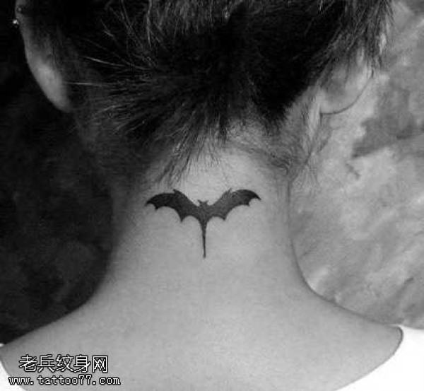 颈部蝙蝠纹身图案