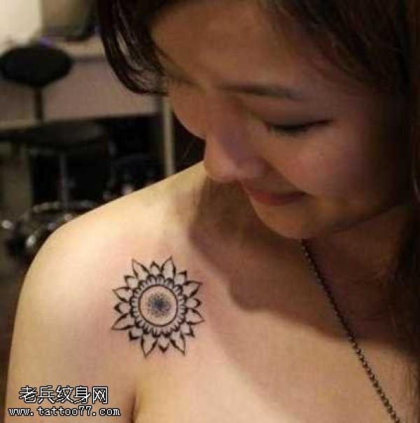 女生肩花纹身_15张女性双肩对称的肩花纹身图案作品图片