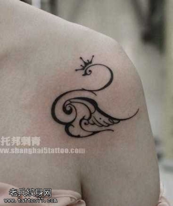 肩膀处图腾天鹅纹身图案