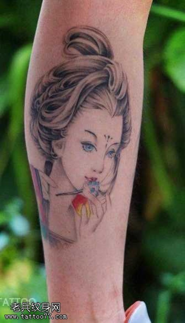 小腿艺妓纹身图案