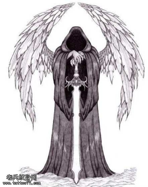 手稿死神翅膀纹身图案