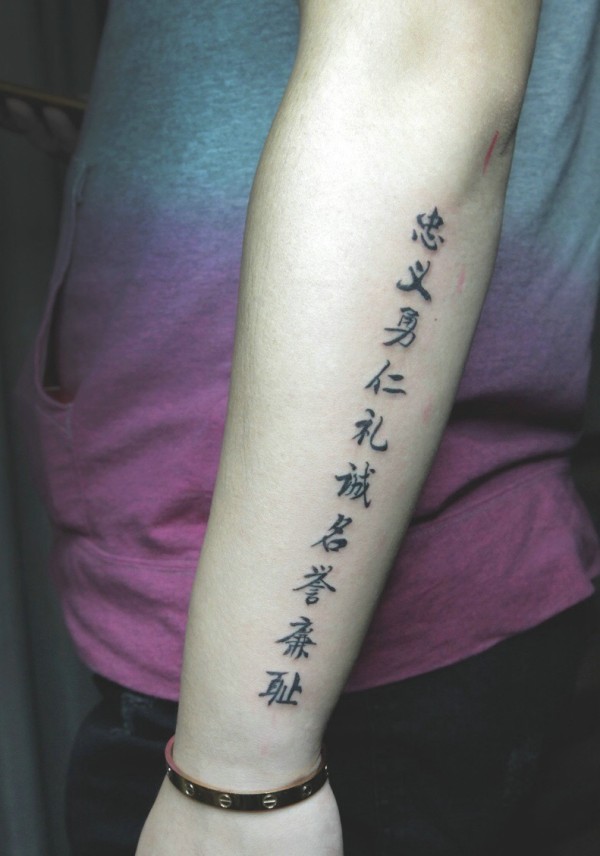 手臂外侧经典的汉字纹身刺青