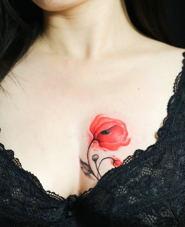 女性大花胸纹身_43张霸气漂亮的女性大花胸纹身图案作品