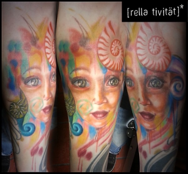 清纯女孩腿上可爱肖像纹身图片_肖像纹身图案大全_纹身图吧