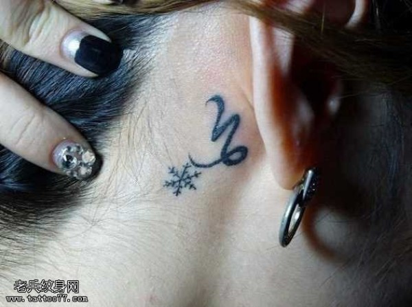 耳部雪花纹身图案