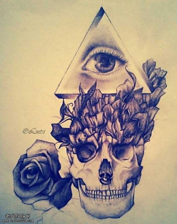 手稿上帝之眼玫瑰花纹身图案
