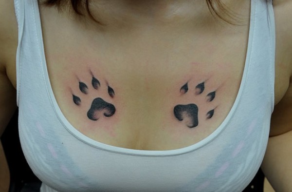 女孩胸前熊脚印纹身图案