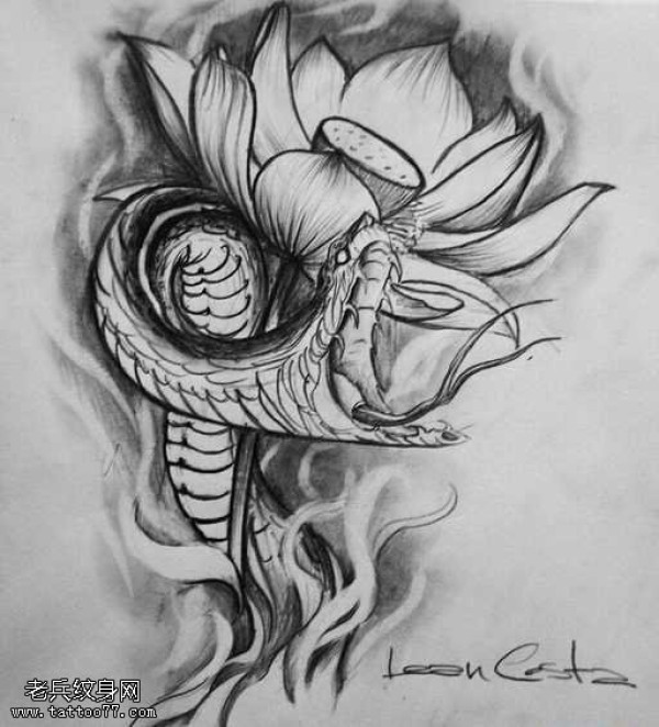 龙纹身手稿_一组老传统黑灰龙手稿纹身图案