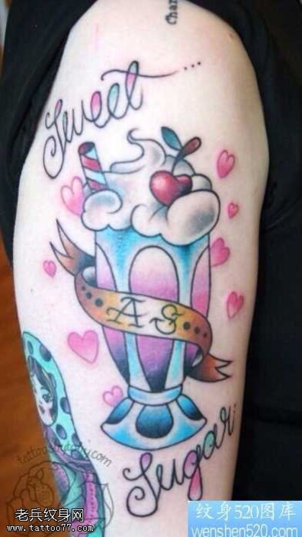 胳膊酒杯纹身图案