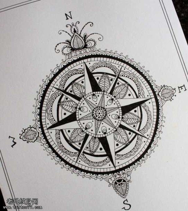 手稿梵花指南针纹身图案