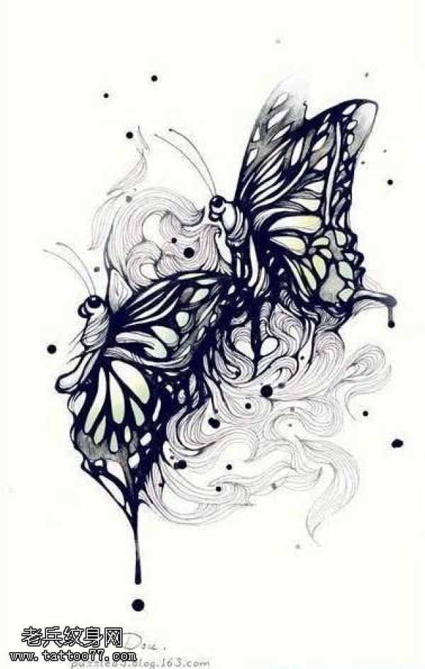 手稿蝴蝶纹身图案