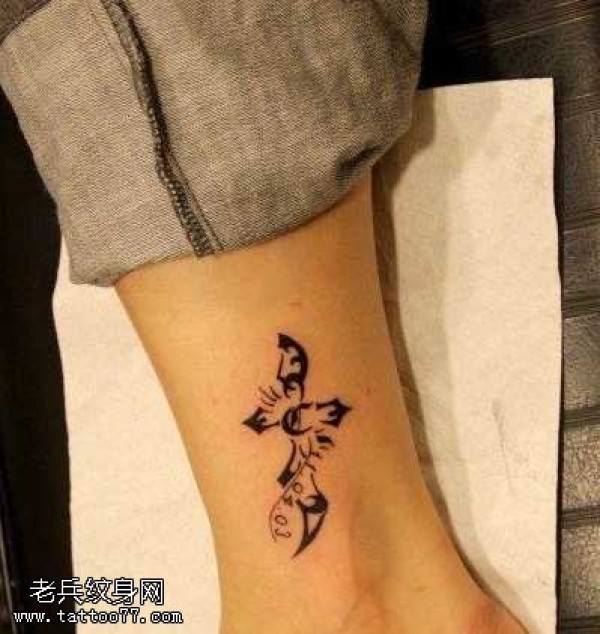 脚部十字架纹身图案
