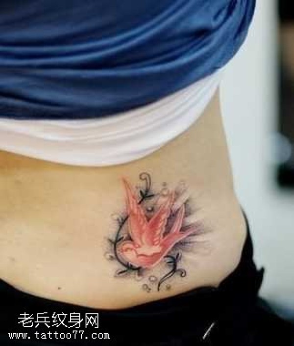分享一款腰部时尚性感的蝶恋花纹身图案_腰部纹身图案大全_纹身图吧