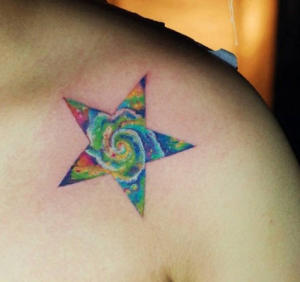 炫彩五角星纹身图案
