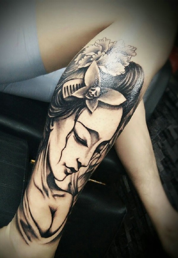 传统花腿纹身--18张传统风格的大花腿纹身图案作品