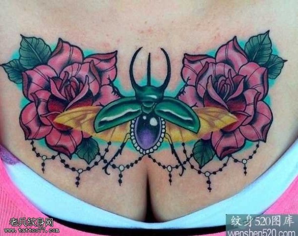 胸部彩色独角仙纹身图案