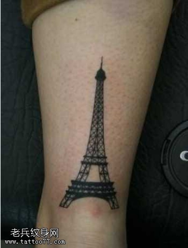 腿部埃菲尔铁塔图腾纹身图案