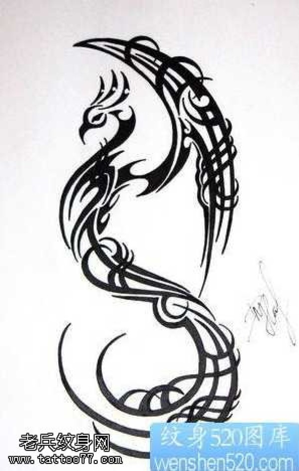 龙纹身手稿_一组老传统黑灰龙手稿纹身图案