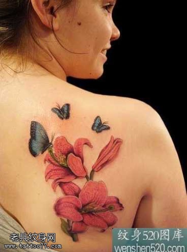 女生肩花纹身_15张女性双肩对称的肩花纹身图案作品图片