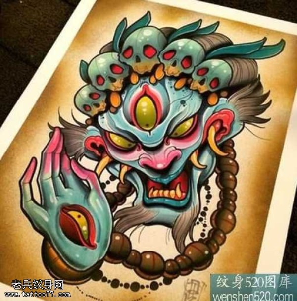 能面万媚纹身手稿_52张日式能剧面具纹身手稿图案素材欣赏