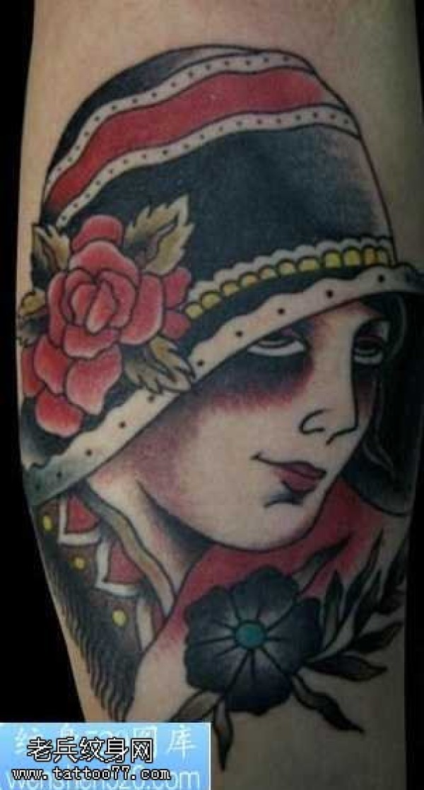 戴帽子的女孩纹身图案