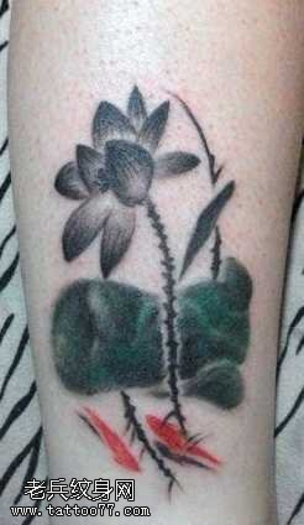 传统鲤鱼花小腿纹身_腿部纹身图案大全_纹身图吧